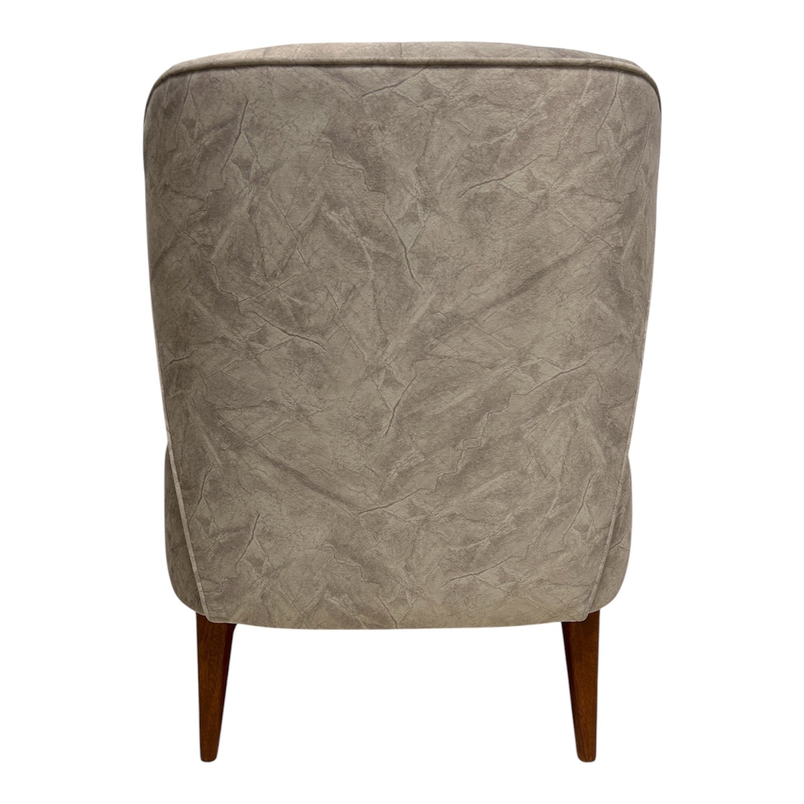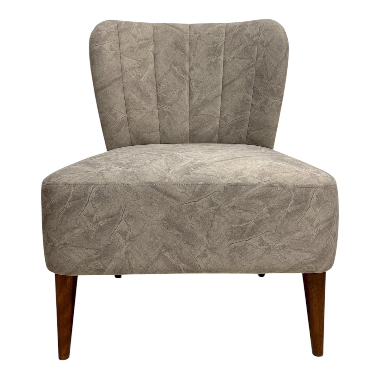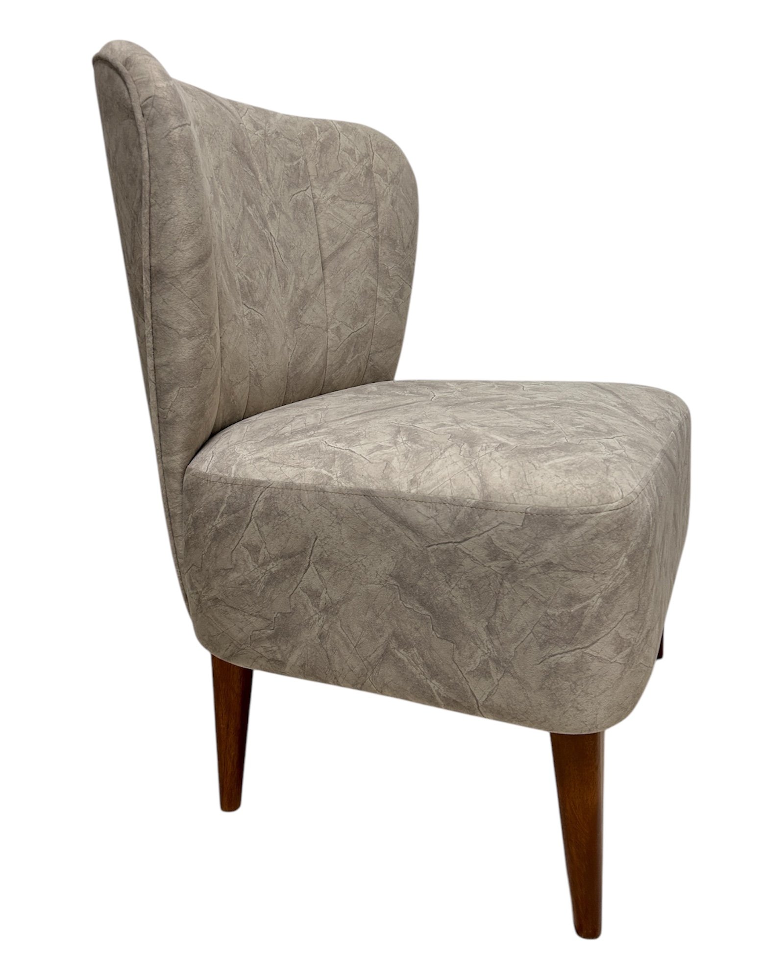 Butaca curva lisa sin brazos, patas de madera de 15cm de alto. Espuma zebra y napa siliconada. Tapiz antifluidos.